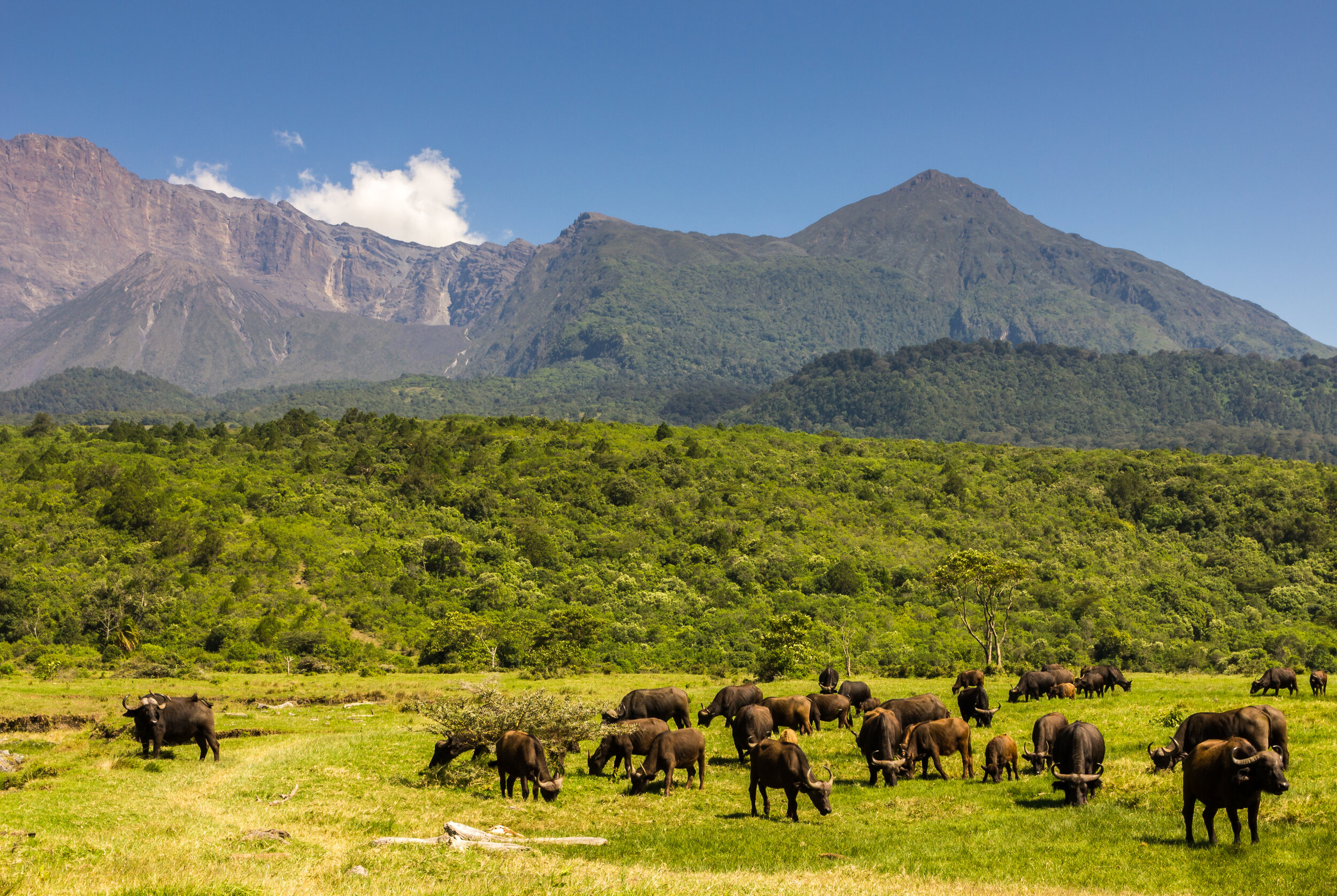 But it is Kilimanjaro’s unassuming cousin, Mount Meru – the fifth highest mountain in Africa at 4,566 metres (14,990 feet) – that dominates the park’s horizon. With its peaks and eastern foot slopes protected within the national park, Meru offers unparalleled views of its famous neighbour, while also forming a rewarding hiking destination in its own right.