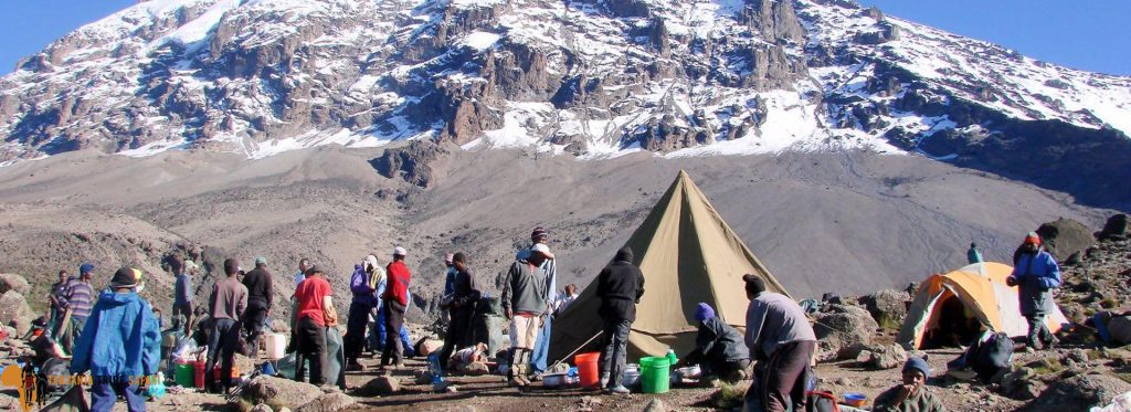 The Barranco Camp is without a doubt the most spectacular campsite of this route, with fantastic views of Kibo, the Western Breach and the first of the southern glaciers, a fitting reward after a strenuous day.